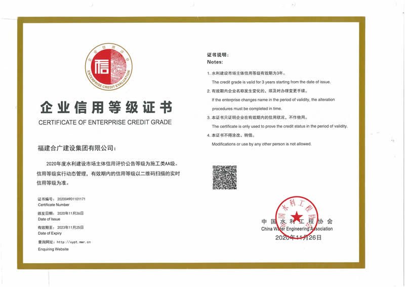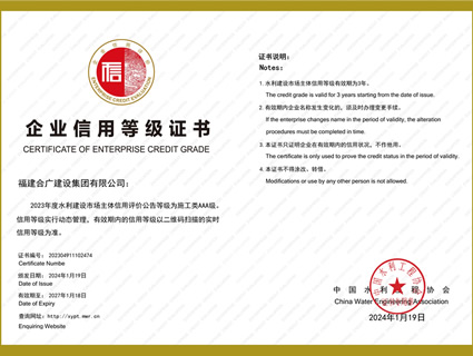 • 2024水利建設(shè)AAA企業(yè)信用等級證書