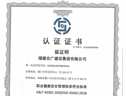 • 2020年職業(yè)健康安全管理認(rèn)證體系證書